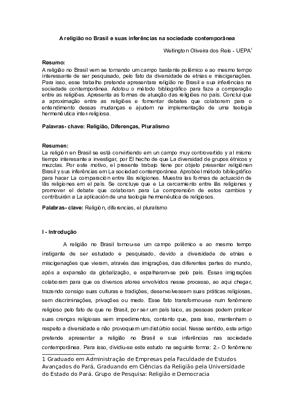 (DOC) A religiao no Brasil e suas inferencias na sociedade contemporanea 1 Wellington Reis