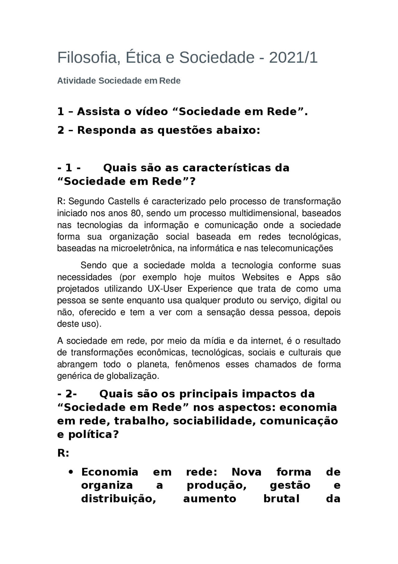 A crítica contida no texto sobre a sociedade contemporánea enfatiza a a prática identitária autorreferente. REVISÄO. reflexöes sobre a internet, os negócios e a sociedade Rio de Janeiro: Jorge Zahar, 2003. De acordo com o texto, a populaçäo engajada em. No texto, o autor apresenta delineamentos éticos que correspondem ao(s)