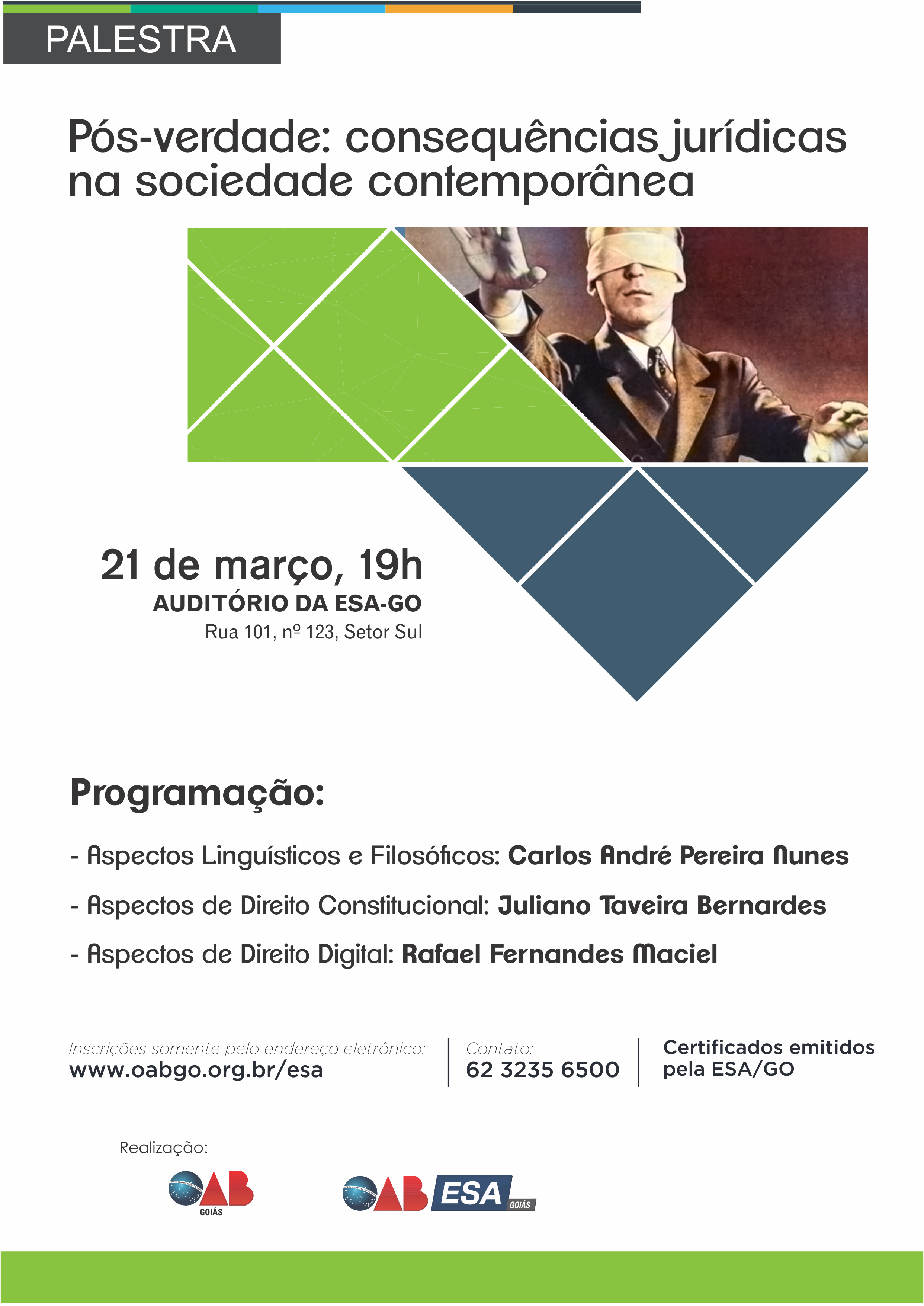21/03 Pósverdade consequências jurídicas na sociedade contemporânea Goiânia Eventos