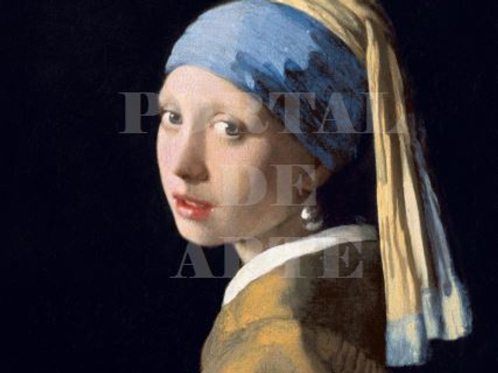 Moça com brinco de pérola é a obra mais famosa de Vermeer. Não se trata de um retrato, mas de um 'tronie', uma pintura de uma figura imaginária. Os 'tronies' descrevem certo tipo de personagem; neste caso, uma garota com uma vestimenta exótica, usando um turbante oriental e uma pérola improvavelmente grande em sua orelha.