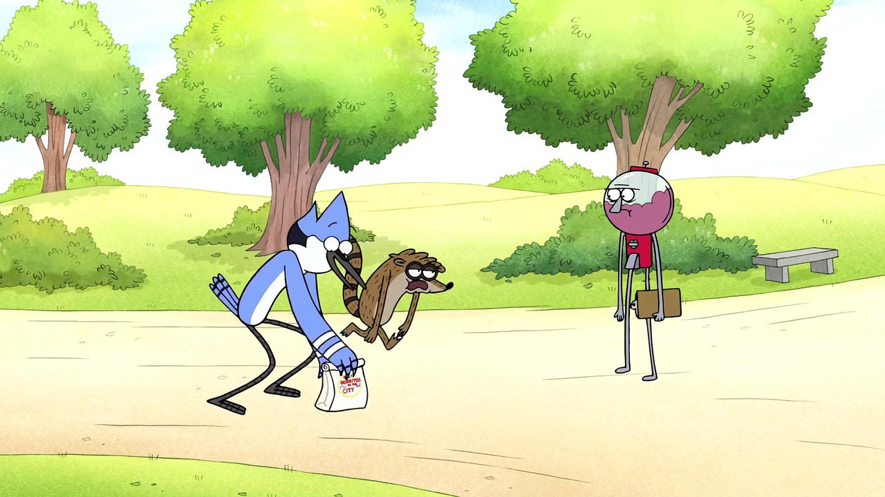 Sinopse. Dois jardineiros em curso de golfe, e melhores amigos, Mordecai (a gralha azul) e Rigby (um guaxinim) passam seus dias tentando distrair-se, por qualquer meio, para a ira de Benson (uma máquina de chicletes), Saltitão (o Yeti), e Pairulito (um homem com cabeça de pirulito).