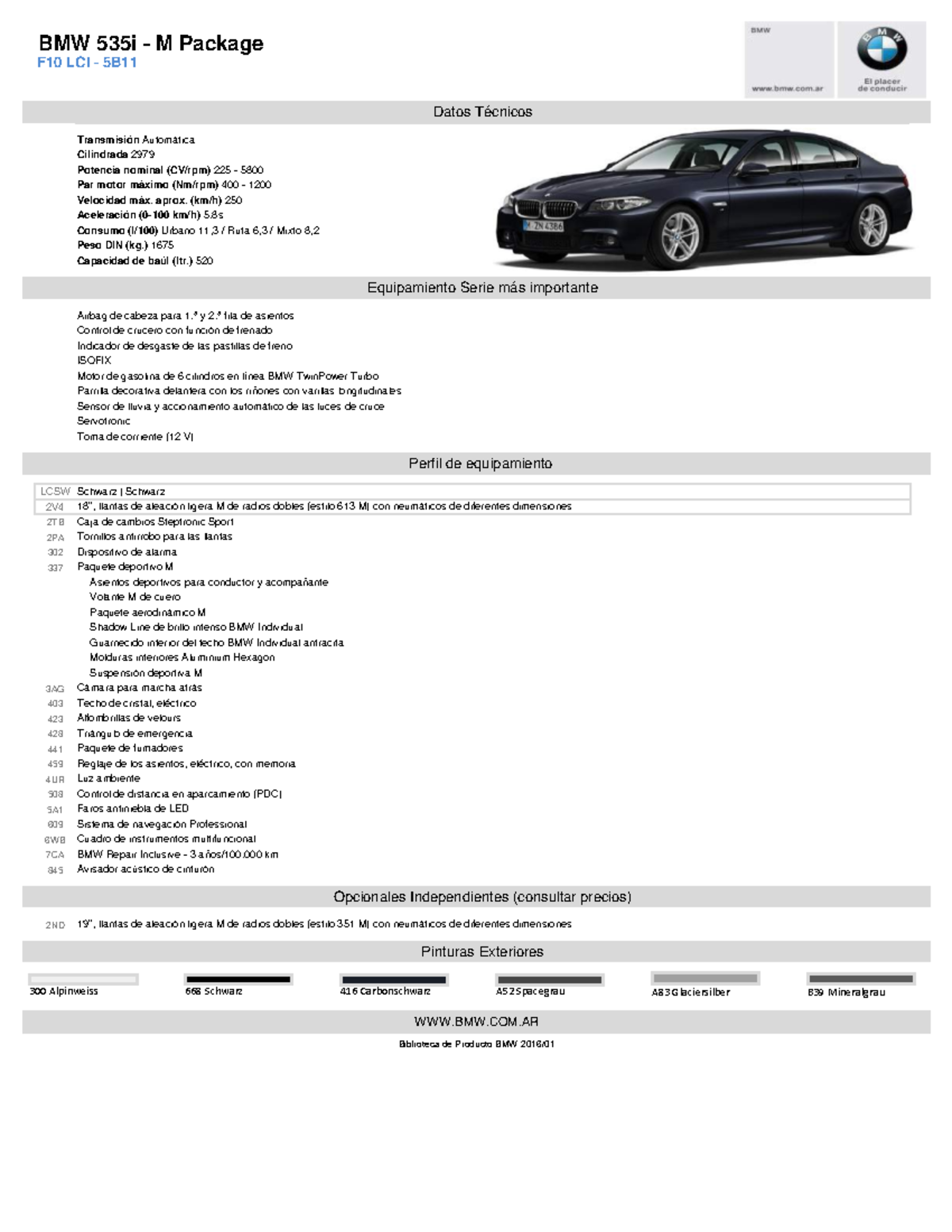 Ficha tecnica bmw 535i m package BMW 535i M Package Transmisión Automática Cilindrada 2979