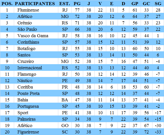 Veja como ficou a tabela de classificação FINAL do Campeonato Brasileiro série A Blog do BG