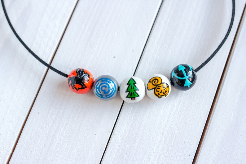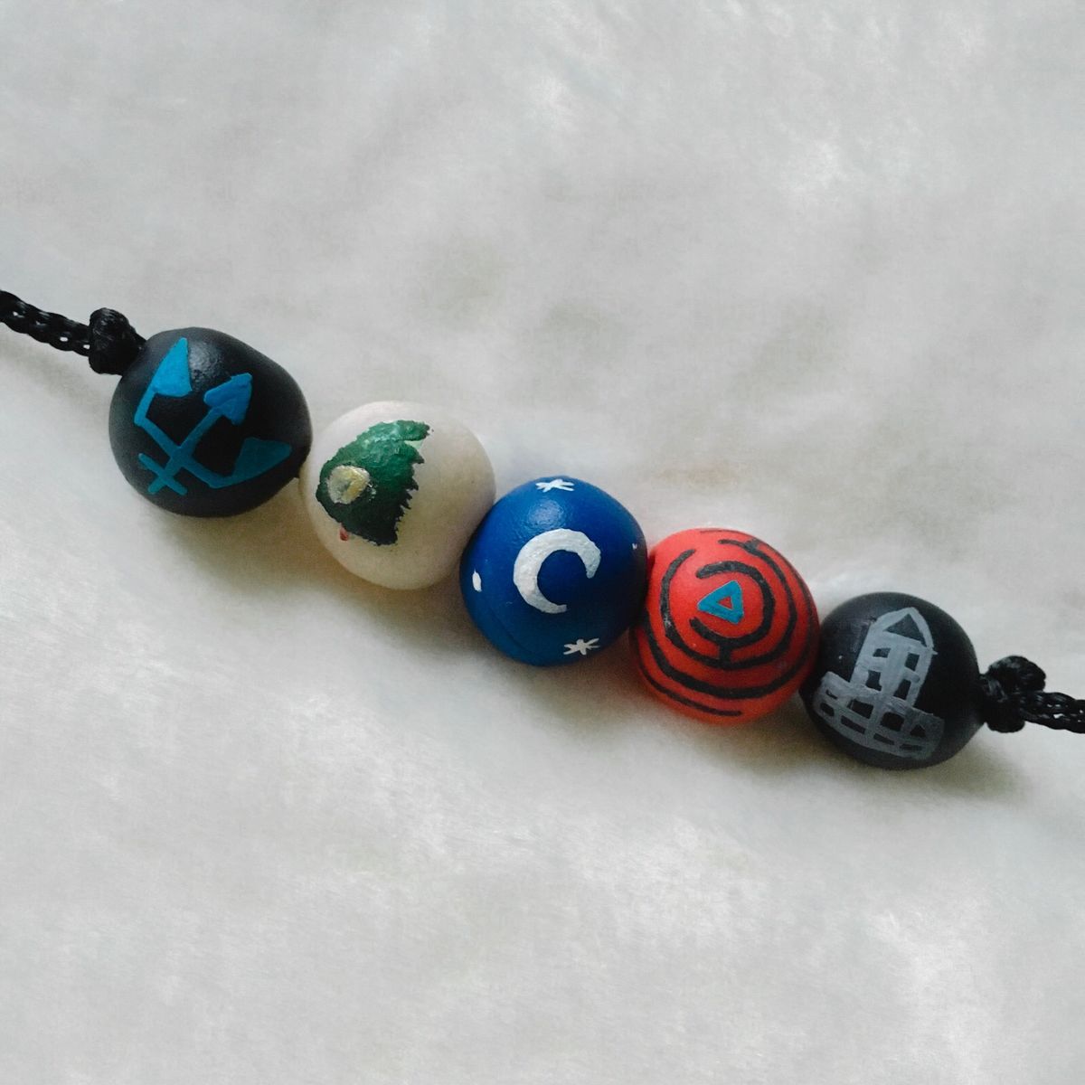 Colar de contas Percy Jackson personalizável! Cordão de seda preto com fecho e contas de biscuit pintadas à mão. ** Tamanho é menor do que da série, favor checar as fotos** Favor informar por mensagem como quer as contas e em qual ordem deseja que sejam colocadas no colar :) Caso queira alterar alguma conta ou queira alguma diferente das disponíveis, favor enviar mensagem para vermos a.