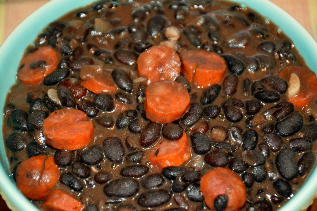 Esta é uma receita muito simples e que faz sempre sucesso! Este feijão preto, enriquecido com bacon e linguiça, é delicioso para acompanhar um prato de carne. E o melhor é que fica pronto em apenas 25 minutos! Esta é uma receita muito simples e que faz sempre sucesso! Este feijão preto, enriquecido com bacon e linguiça, é delicioso.