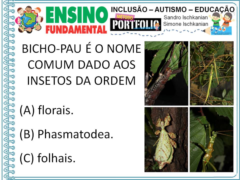 O bicho-pau é um animal que lembra um pequeno galho. Por olhares desatentos, os bichos-pau passam completamente despercebidos, o que evidencia sua incrível capacidade de camuflagem. Esses animais fazem parte da ordem Phasmatodea, a qual inclui mais de 3000 espécies.Insetos pertencentes a essa ordem são predominantes em regiões tropicais, entretanto, podem ser encontrados em outras.