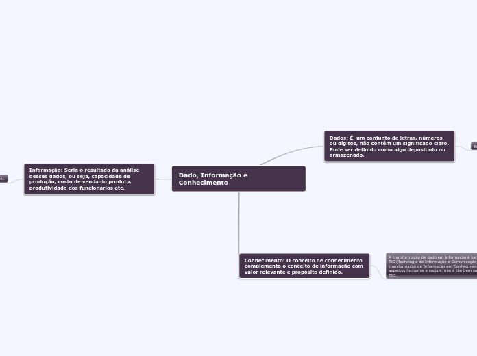 Learn. Test. Match. Created by. laendeR_Batista. Study with Quizlet and memorize flashcards containing terms like Dado; Informação; Conhecimento; e Inteligência, Dado, Dados são fatos ou estatísticas coletadas para servir de referência ou análise. and more.