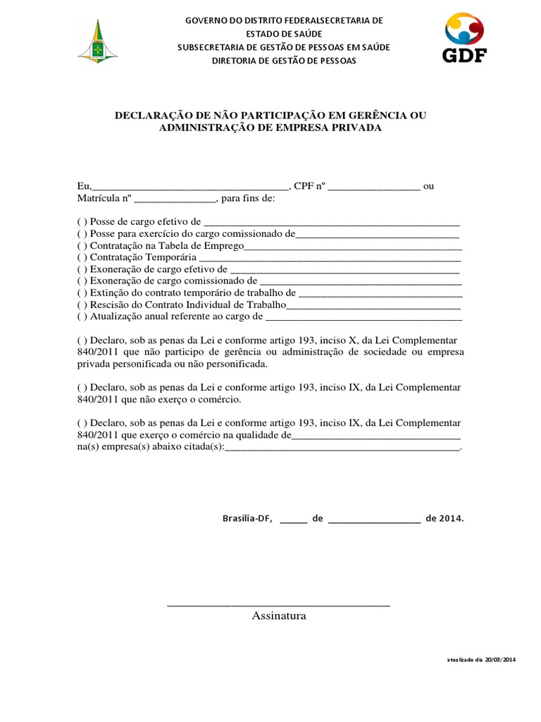 Declaracao de Nao Participacao Em Gerencia Atualizado20032014 Business Governo
