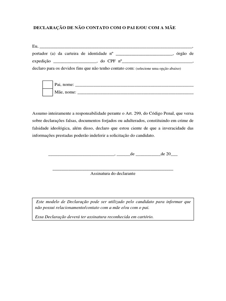 Modelo de Declaracao de Nao Contato Com o Pai e Ou Com A Mae PDF