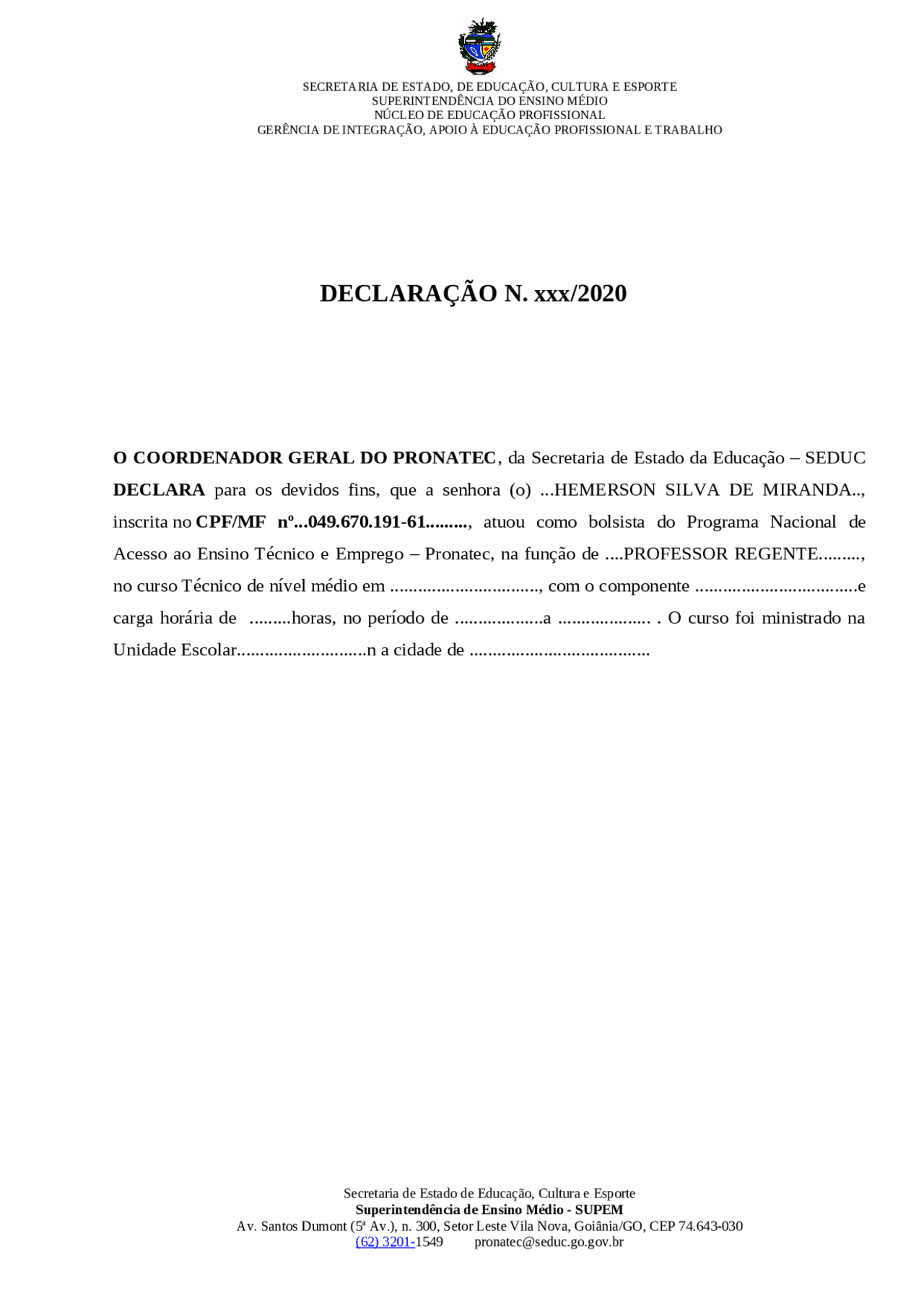 Exemplo De Declaração Que Não Exerce Atividade Remunerada Novo Exemplo