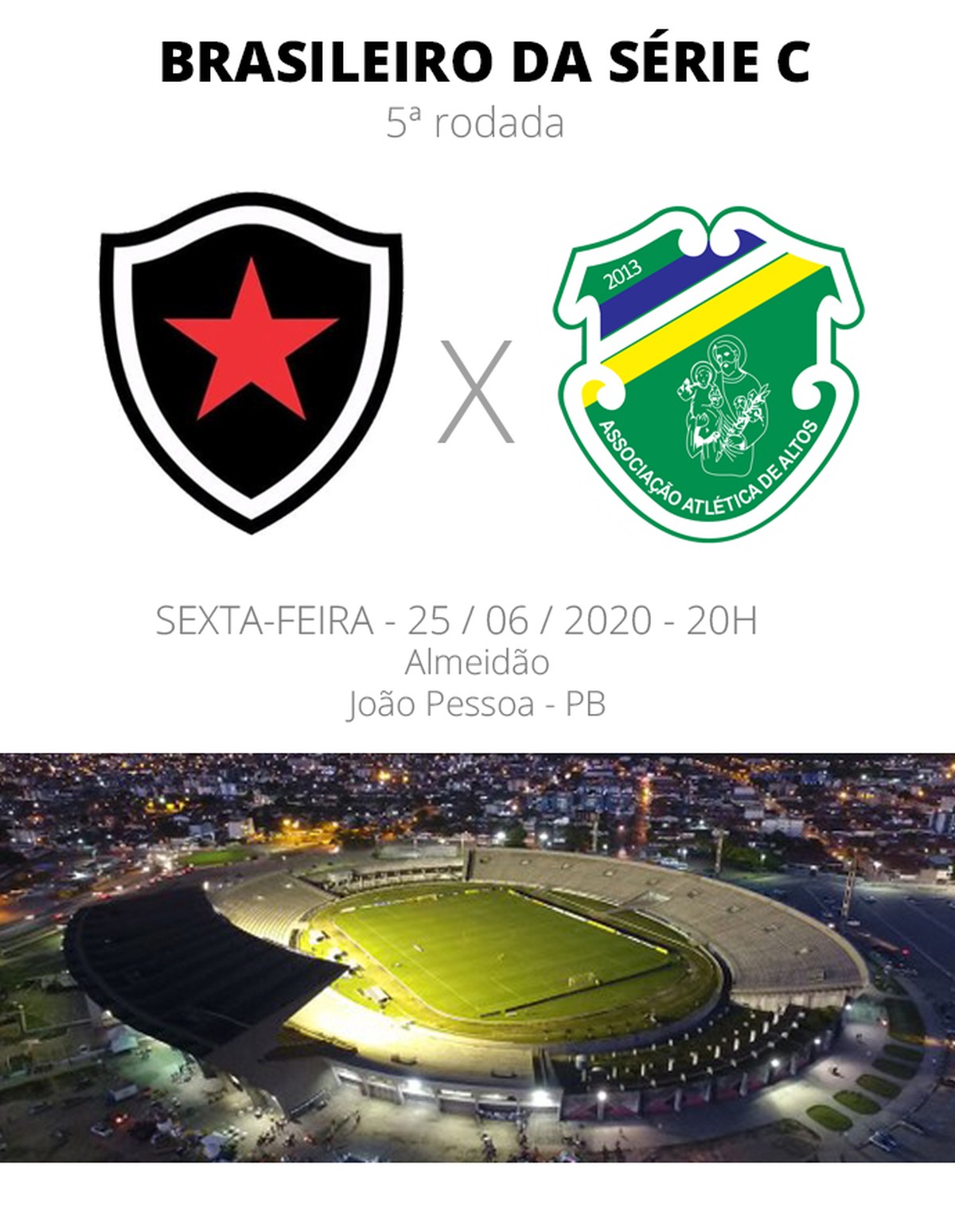 A partida entre Botafogo-PB x Altos acontece neste dia 20/02/2024, às 20h00 (pelo horário de Brasília). Abaixo você poderá conferir todas as principais informações deste jogo, além de saber como assistir a partida na TV ou pela internet , de acordo com as opções disponíveis para que você consiga ver o jogo ao vivo.