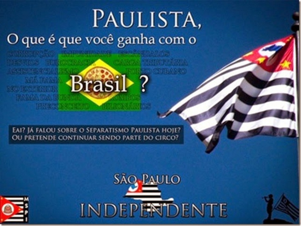 Mas a maior concentração de grupos separatistas aparece nos estados de São Paulo e do Rio Grande do Sul, que já tiveram históricos de guerras civis travadas no passado contra o governo central. Foram, respectivamente, a Revolução Constitucionalista (1932) e a Revolução Farroupilha (1835-1845).