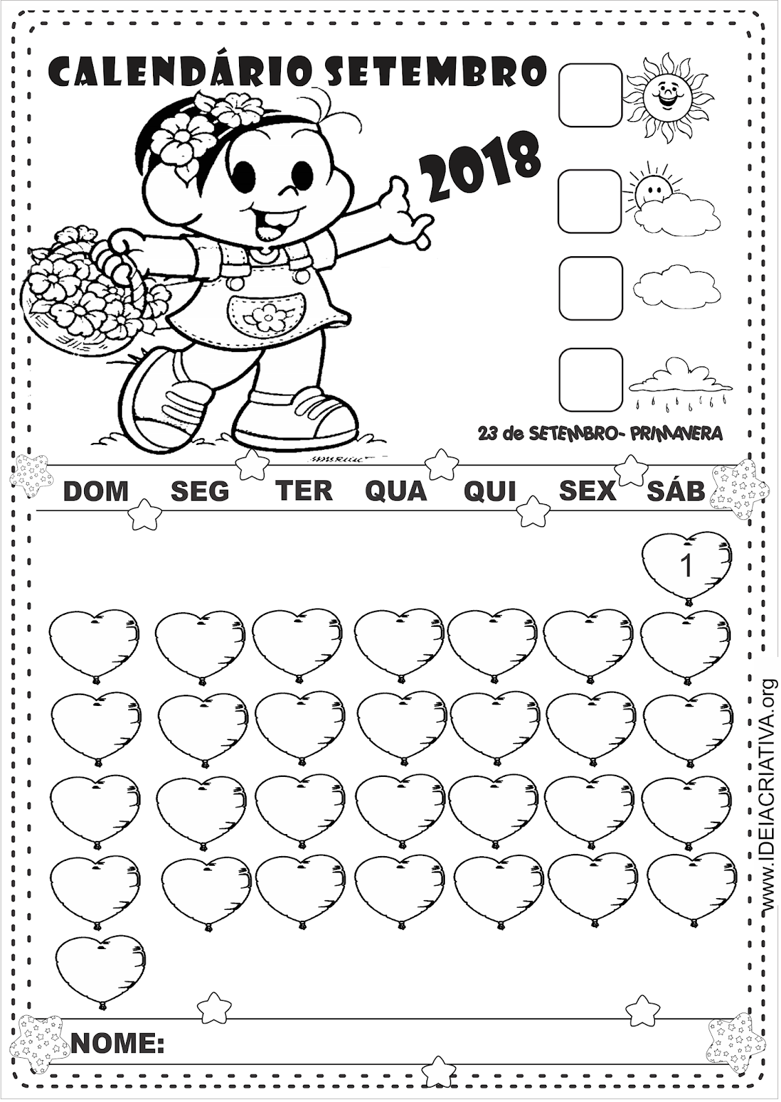 Calendários Ilustrados Turma da Mônica para imprimir Mês Setembro Ideia Criativa Gi Carvalho