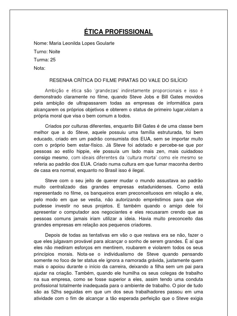 Assista ao filme "Pirates of Silicon Valley", e posteriormente siga o roteiro nesse documento para fazer uma monografia a respeito. microinformática mudou profundamente o mundo. Quase todas as atividades humanas tem alguma relação com microinformática. história do início da microinformática, contada nesse filme, é um estudo de caso.