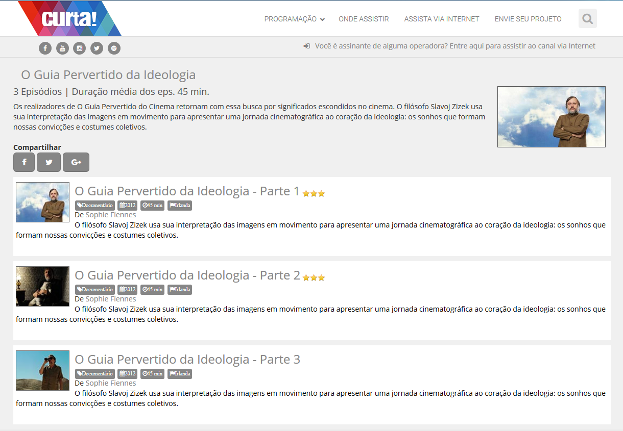 Exibição do documentário "O guia pervertido do cinema". Enviado por Viviann Barcelos em seg, 29/07/2013 - 18:21. Conduzido pelo polêmico filósofo esloveno Slavoj Zizek, o documentário O Guia Pervertido do Cinema (2006), da diretora britânica Sophie Fiennes, é uma obra de referência para estudantes e profissionais do audiovisual e.