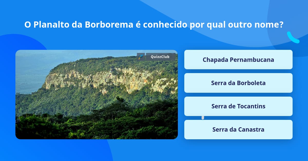 O Planalto da Borborema é conhecido... Perguntas Triviais