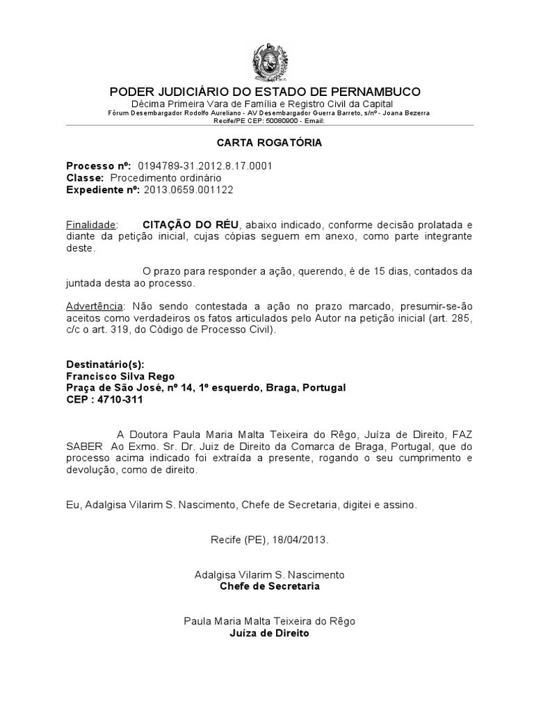 Modelos Anexo 3A Modelo Simplificado de Carta Rogatória PDF