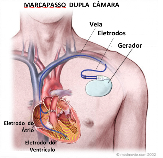 Marcapasso cardíaco explicado em 1 minuto. O marcapasso cardíaco (pacemaker) é um pequeno dispositivo médico alimentado por uma bateria que regula o ritmo do coração.Usado no tratamento de arritmias cardíacas, como a bradicardia (batimento cardíaco lento), o marcapasso envia impulsos elétricos ao coração para assegurar que ele bata a um ritmo adequado e regular, compensando as.