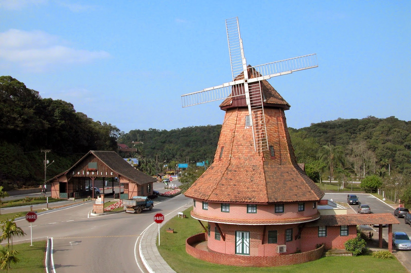 A paisagem mudou na década de 1970 com a abertura da BR-101 e com a implantação do pavilhão, onde começaram a ocorrer grandes eventos, como os Festivais de Cerveja e a Festa das Flores. Preservando todos os detalhes de um moinho original alemão, o moinho resiste às quase quatro décadas sem intervenções que mudem sua arquitetura.