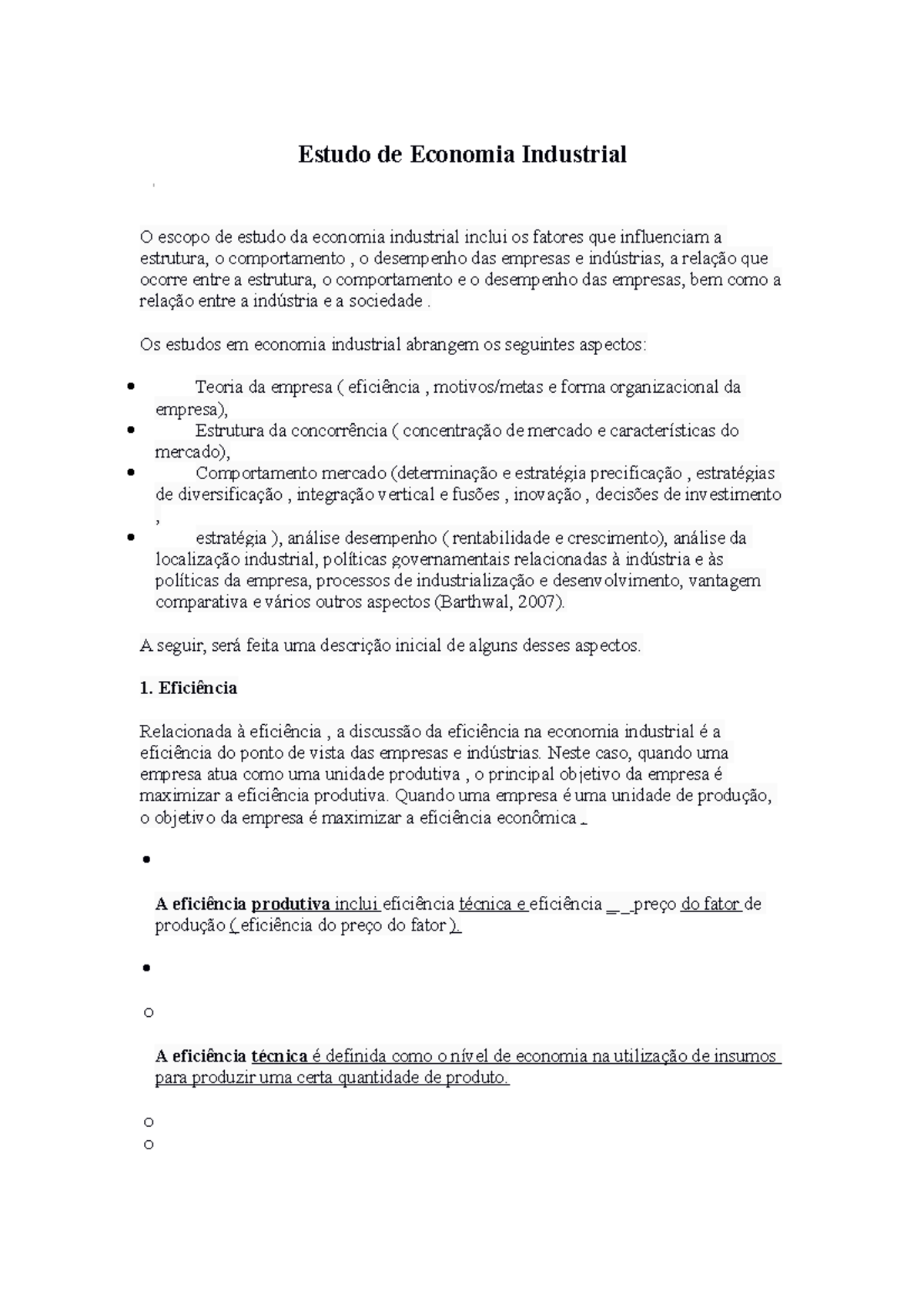 Industrial Economics Study (11) Estudo de Economia Industrial O escopo de estudo da economia