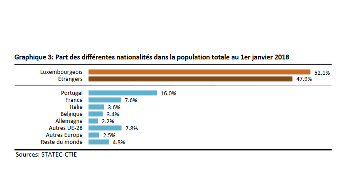 Os Portugueses no Luxemburgo: crescimento e números-chave. No Luxemburgo, os residentes estrangeiros representam 48% da população total do país. Entre eles, a maioria são portugueses. Conforme consta do site governamental Luxembourg.public.lu, em 2021, o Luxemburgo contava com 93.678 Portugueses, ou seja, 14,5% da população total do.
