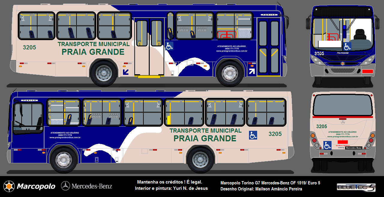 Desenhos de Ônibus de SP e RJ Viação Piracicabana Praia Grande 3205